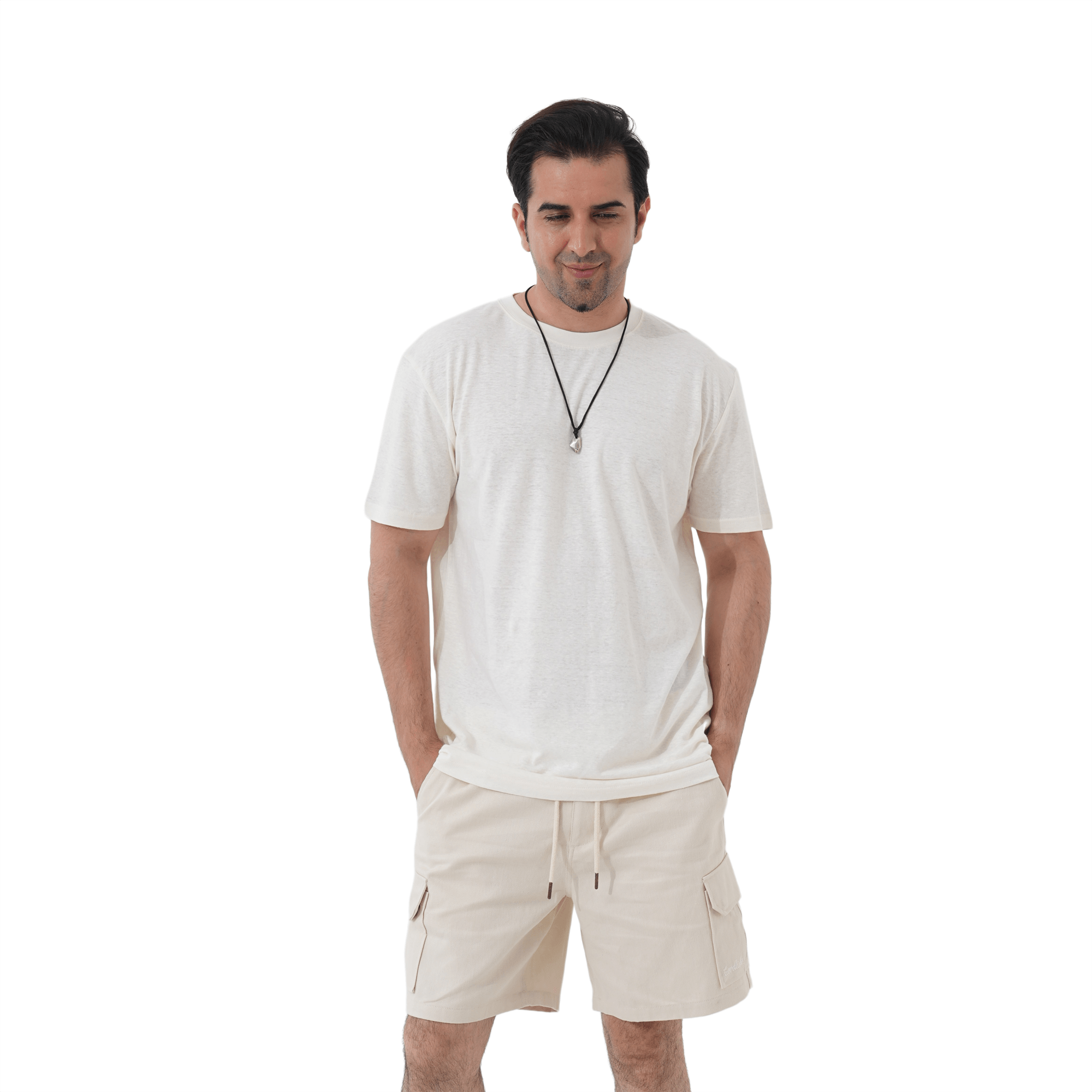 Мушке кошуље од конопље са дуплом иглом прошивене на рукавима и доњем рубу, трака за врат од рамена до рамена